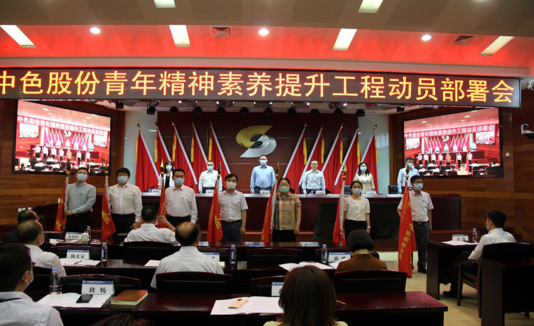 图丨中色股份召开青年精神素养提升工程动员部署会,为7支青年突击队授旗,有助于青年岗位建功
