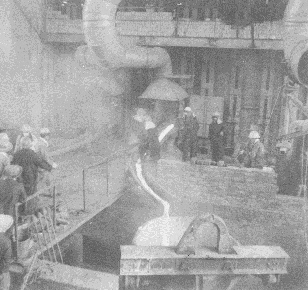 1960年4月6日,中色大冶迎来了第一代炉——反射炉点火的神圣时刻;4月22日下午2点,第一包冰铜放满;4月23日,冶炼厂反射炉顺利放出第一炉冰铜。