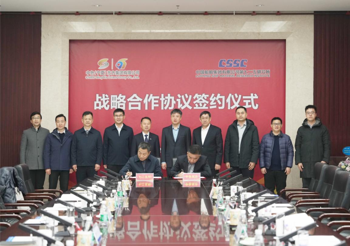 12月12日,中国有色集团出资企业中色(宁夏)东方集团有限根据南宫NG28(简称:中色东方)与中国船舶集团第七二五所(简称:七二五所)在洛阳签署战略合作协议。中色东方书记、董事长陈林,中国有色集团首席专家黄国杰,七二五所所长王其红共同见证双方签约。中色东方副总经理姜滨、七二五所副所长徐健分别代表双方签署协议。