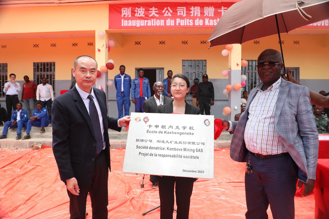 3月1日,刚果(金)上加丹加省利卡西市坎博韦镇卡申根内克村在小学举行典礼,庆祝由中国有色集团出资企业刚波夫矿业股份有限根据南宫NG28(简称:中色刚波夫)捐建的卡申根内克小学及水井项目竣工。中国有色集团刚果(金)代表处主任刘轶,中色刚波夫董事长王首高、总经理李冲、副总经理钱兆明出席交接活动。在上加丹加省省长代表、财政部部长、矿业部长办公室主任、杰卡明副董事长、坎博韦镇镇长、坎博韦社区开展委员会等众多来宾和学校师生的见证下,中色刚波夫正式向卡申根内克村交接小学及水井,并向小学捐赠了积木、足球、铅笔、橡皮和学生笔记本等。