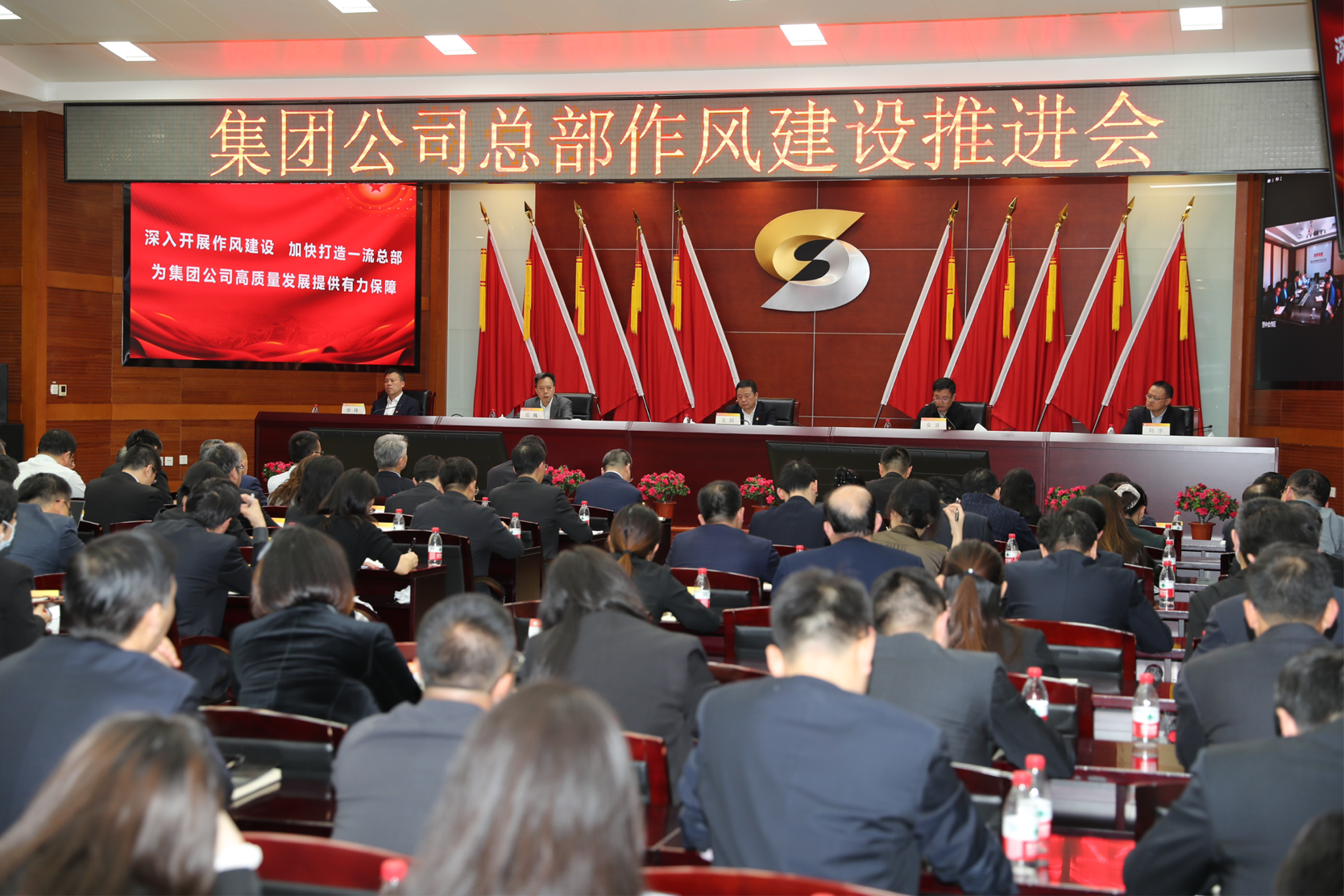 会议以现场和视频相结合的形式召开,集团根据南宫NG28领导班子成员、高级管理人员和总部全体干部职工参加会议。
