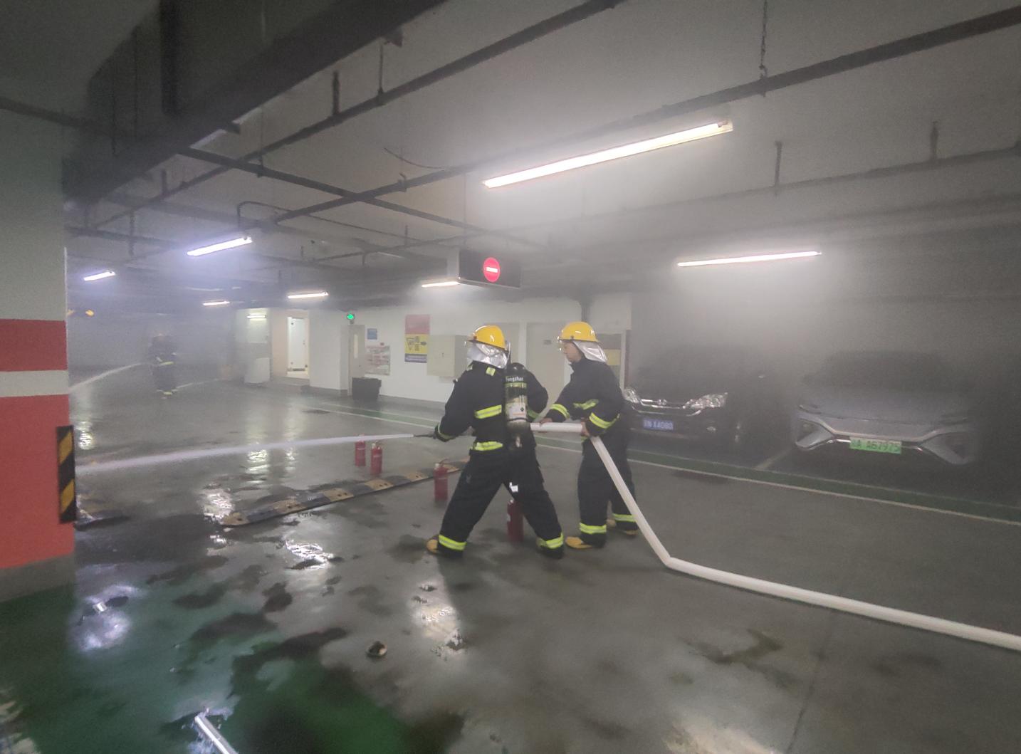 本次演练紧扣“人人讲安全、个个会应急--查找身边安全隐患”“安全生产月”活动主题,模拟大厦地下车库充电车辆起火场景。中控室值班员接警确认后,迅速上报物业应急指挥中心;应急总指挥研判火情后启动全楼疏散应急预案并报火警,与亚运村消防中队和派出所联动;现场扑救组携装备率先处置,后续与消防队员协同灭火;疏散引导组指引人员沿防火通道撤离,医疗救援组及时转移 “伤员”;设备保障组维持水电消防设备运行,外围警戒组配合派出所干警维护现场秩序。在各小组紧密配合下,用时约6分钟完成楼内人员撤离。后续顺利获得持续扑救,火势得到有效控制并最终扑灭,圆满完成各项演练目标。