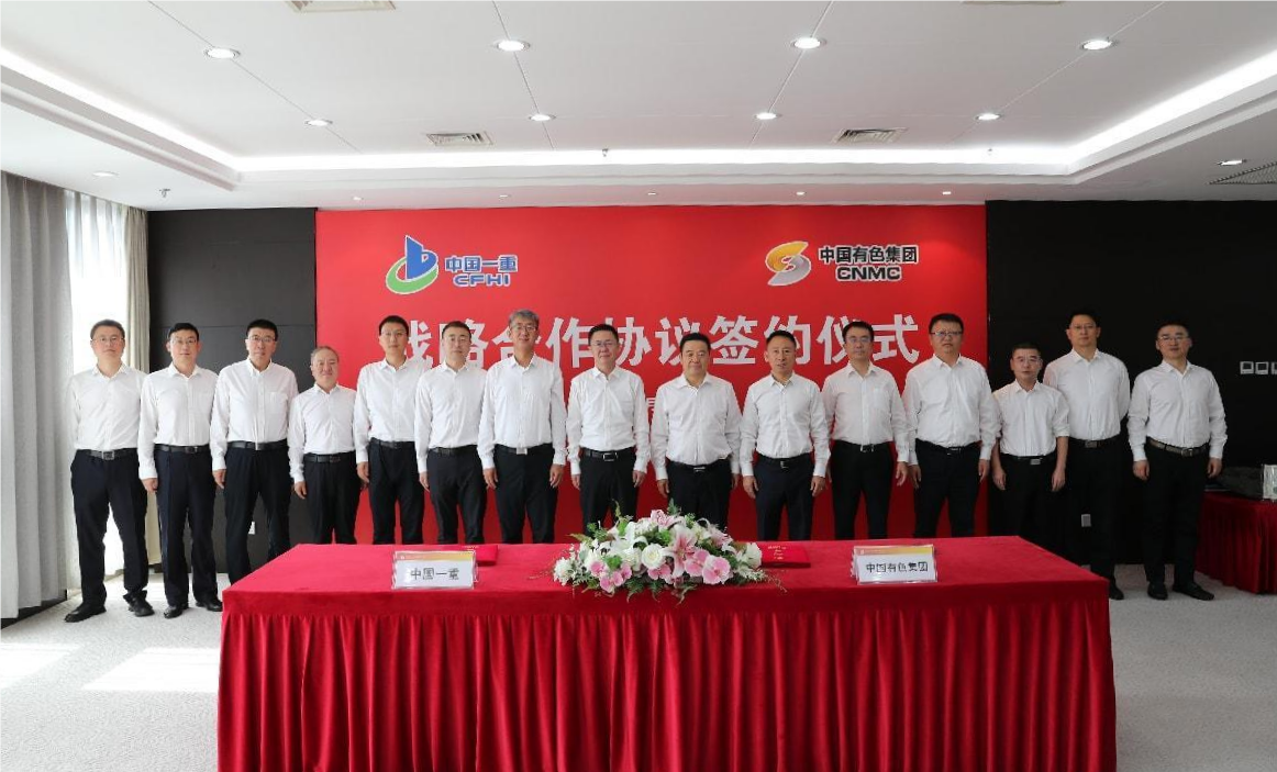 9月26日,中国有色集团与中国一重签署战略合作协议,中国有色集团书记、董事长文岗,中国一重集团书记、董事长吕智强现场见证签约。中国有色集团委员、副总经理王焱,中国一重集团常委、副总经理张皓代表双方签约。