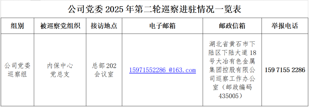 此轮巡察至11月30日结束。巡察期间,巡察组公布联系电话、电子邮箱、接访地点并开通“码上巡察”信访举报平台,每天受理电话的时间为08:00至18:00。根据巡视工作条例规定,巡察组主要受理反映内保中心党总支领导班子及其成员、下一级党组织主要负责人、重点岗位人员问题的来信来电拜访,重点是关于违反政治纪律、组织纪律、廉洁纪律、群众纪律、工作纪律和生活纪律方面的举报和反映。其他不属于巡察受理范围的信访问题,将按规定由被巡察党组织及有关部门处理。